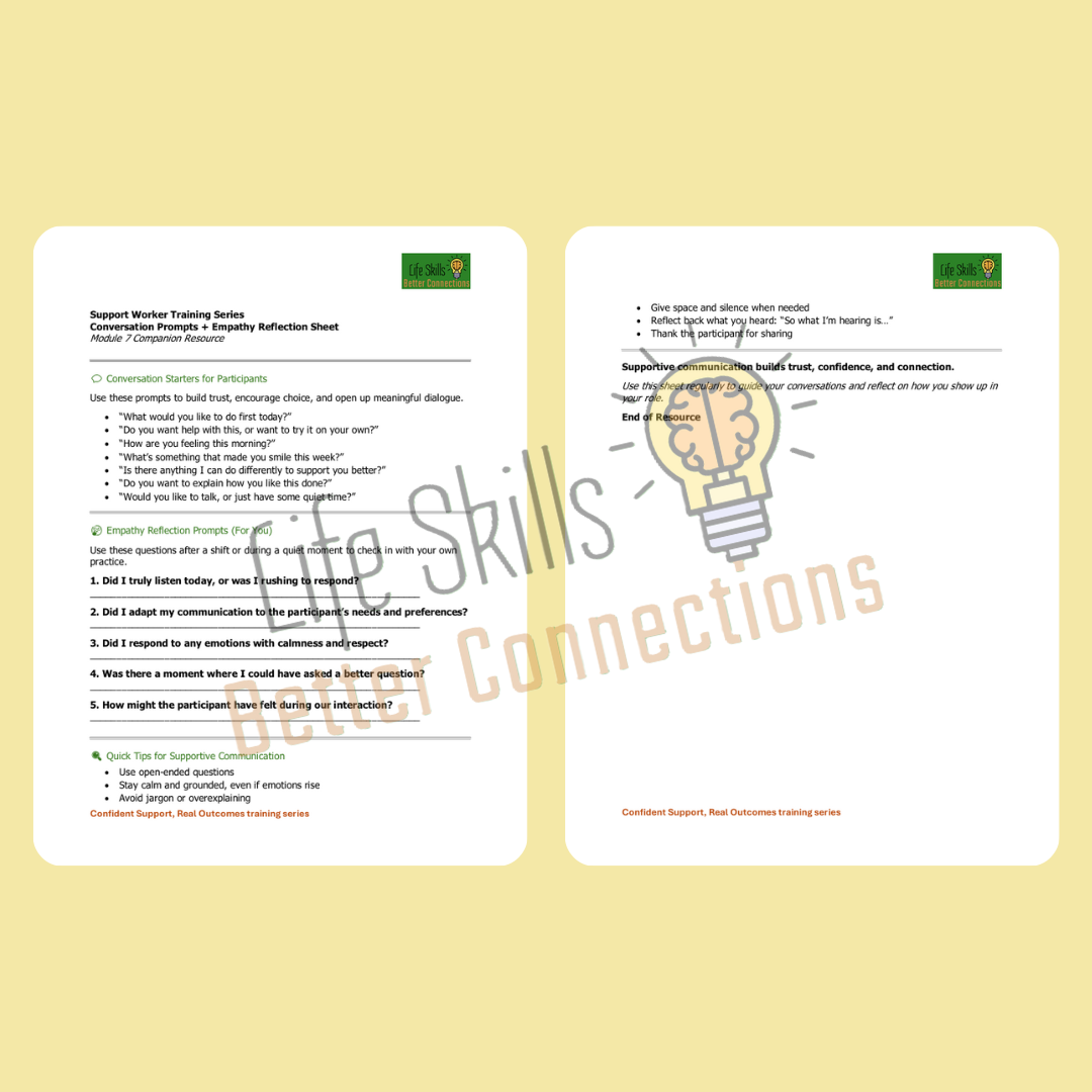 A short guided reflection work sheet that helps support workers reflect on recent conversations and their emotional impact.