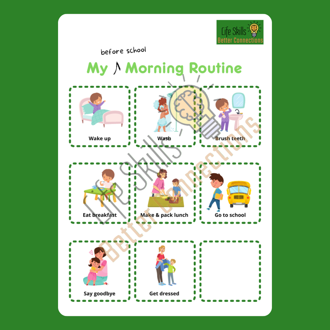 A step-by-step visual morning routine schedule that helps children move smoothly through their morning tasks.