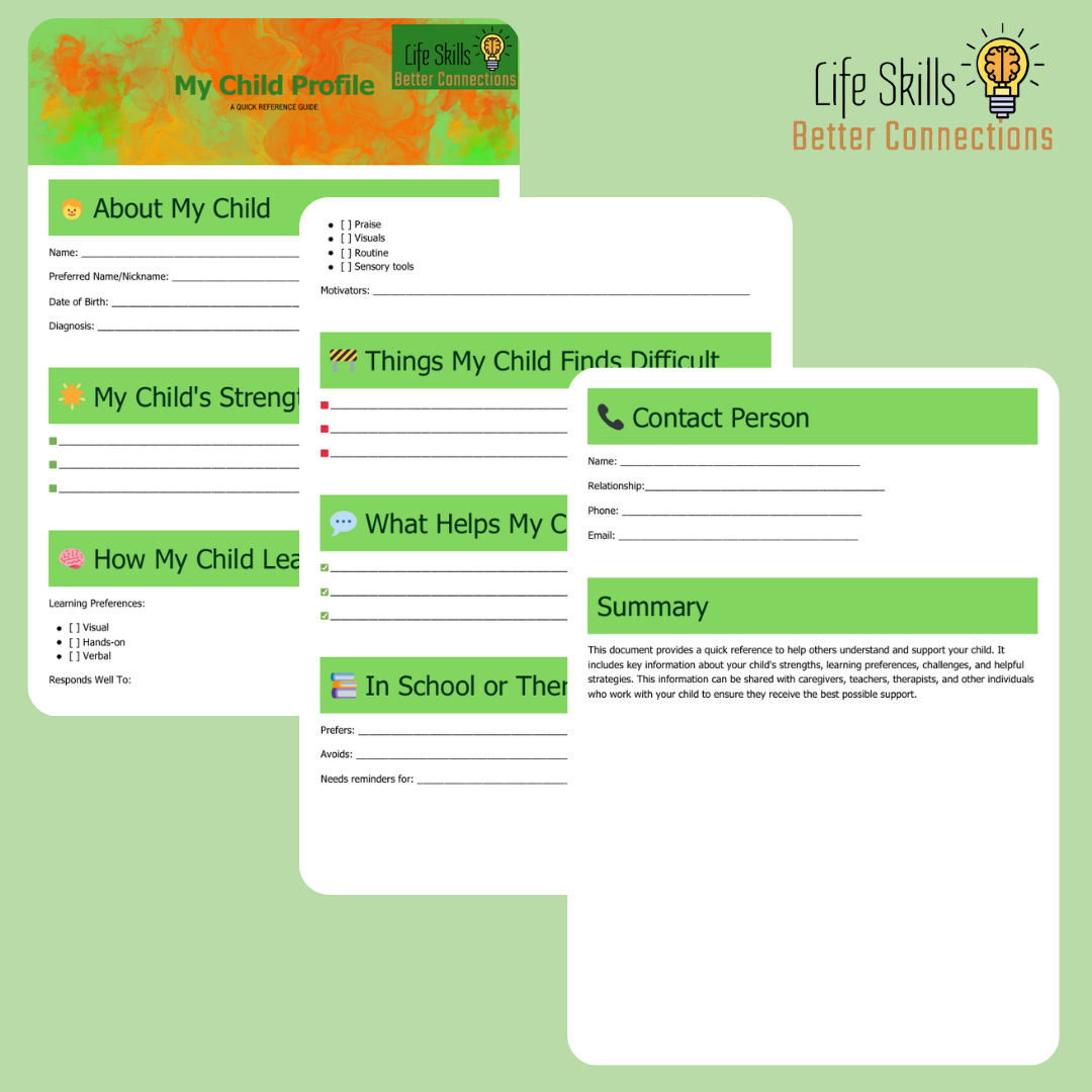 Share it with teachers, therapists, or caregivers to make sure everyone understands your child’s unique personality and support needs.