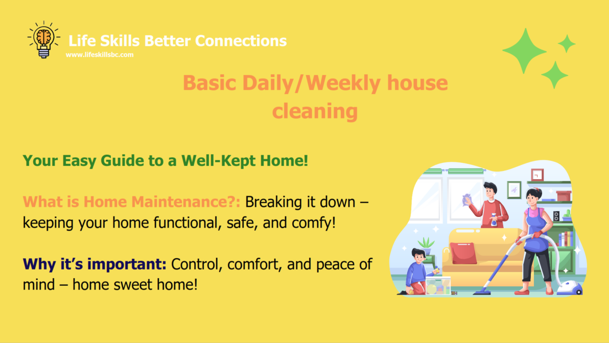 This practical, group-based program helps participants develop essential life skills to confidently care for their home, vehicle, and pets. Whether living independently, in shared housing, or preparing for greater day-to-day responsibility, participants gain hands-on experience that builds pride, safety, and personal ownership.