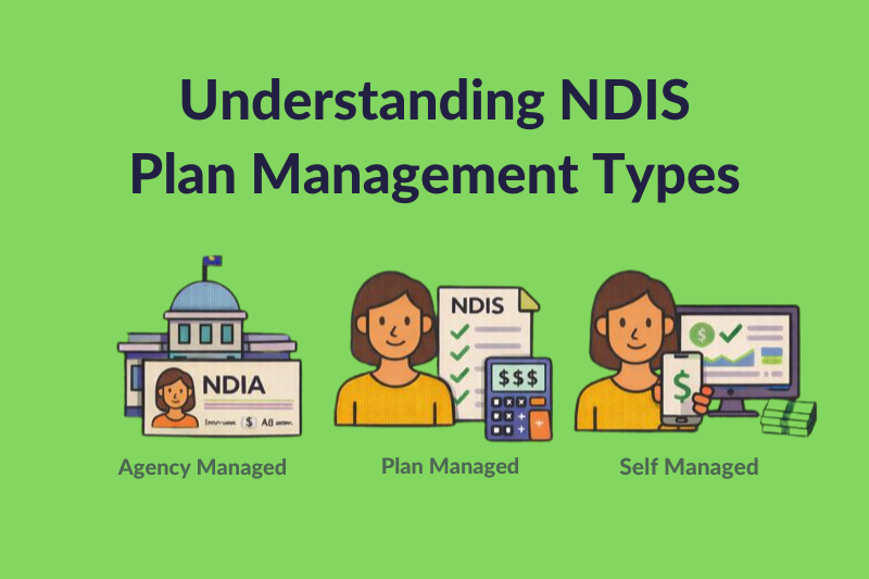 • The three NDIS plan management types — Agency Managed, Plan Managed, and Self-Managed